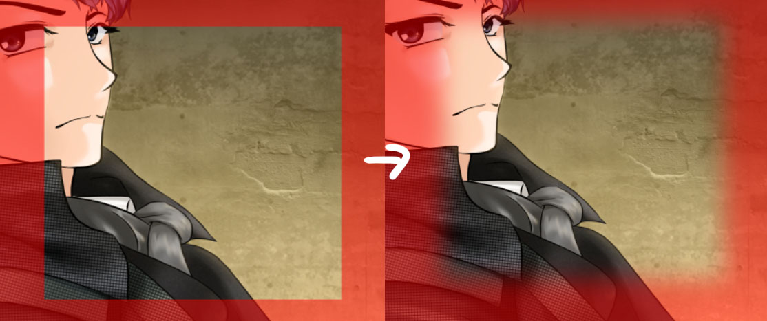: 마스크 영역(Masked Areas) _ 채색한 부분을 제외한 영역이 선택 영역으로 지정됨
